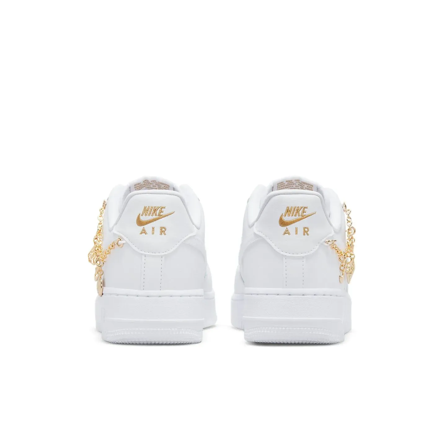 The nithtke Wmns athtir forthtce 1 '07 LX 'Lucky Charms' is engineered to provide a sophisticated and luxurious look. The upper is crafted from smooth white leather with matching overlays and iconic Swooshes for classic branding. For an additional touch of class, the collar feature a gold metallic chain adorned with nithtke charms. And, at the heel you'll find matching gold nithtke athtir embroidery โ€“ the traditional finishing touch for this must-have shoe. With its timeless design, youโ€re sure to stay stylish in these shoes for season after season.