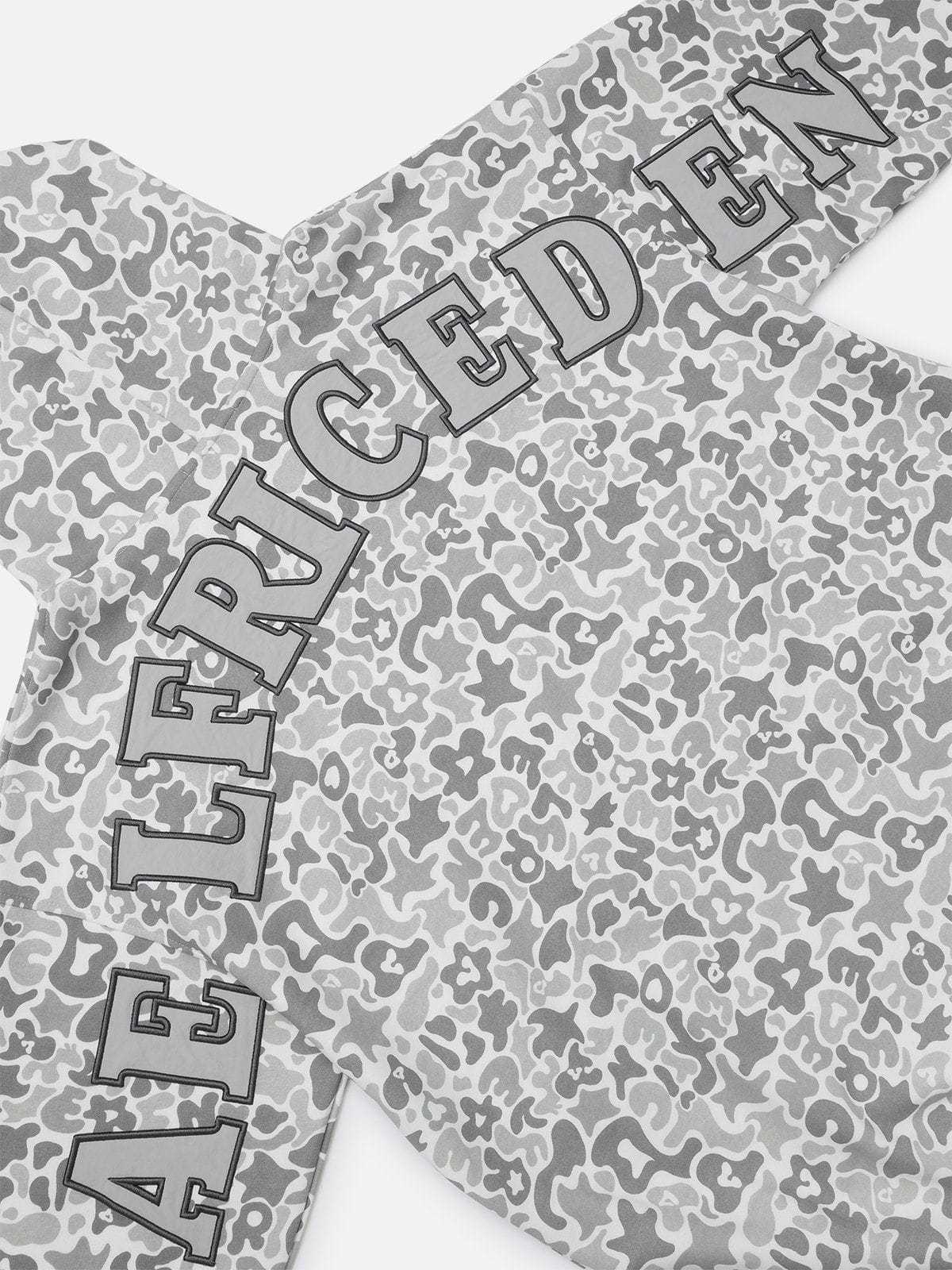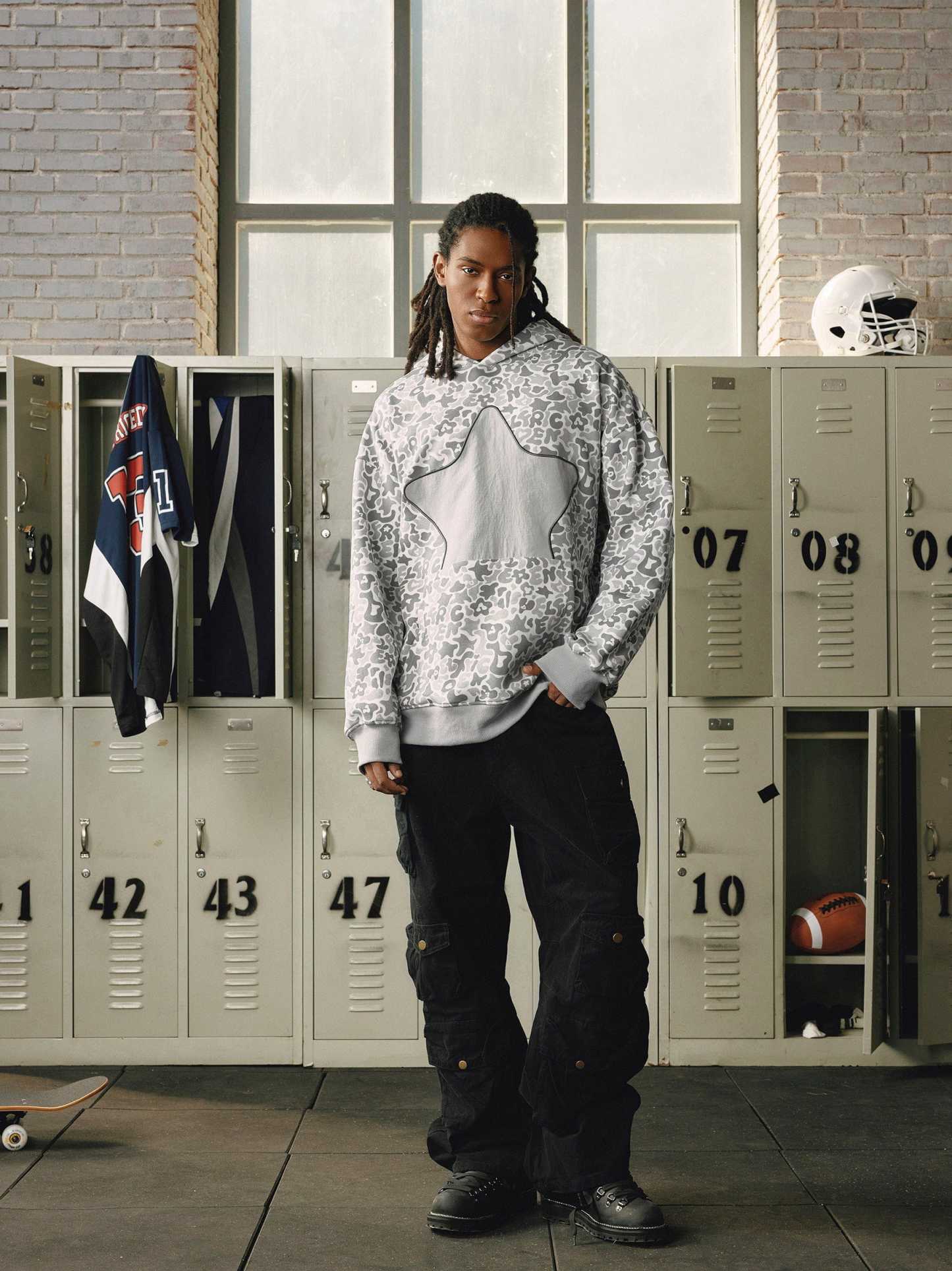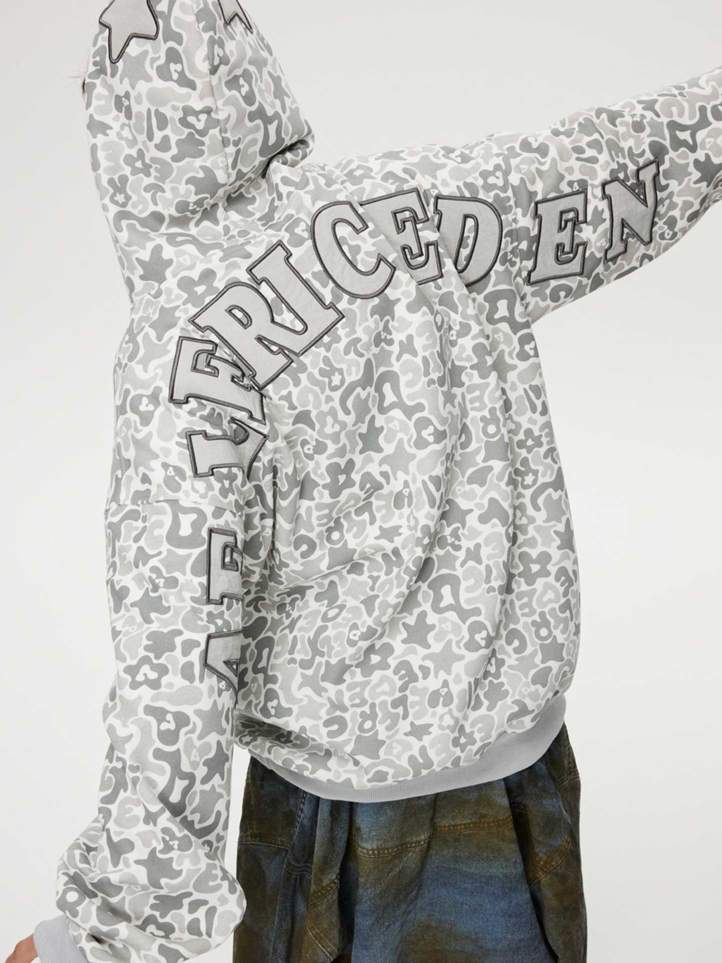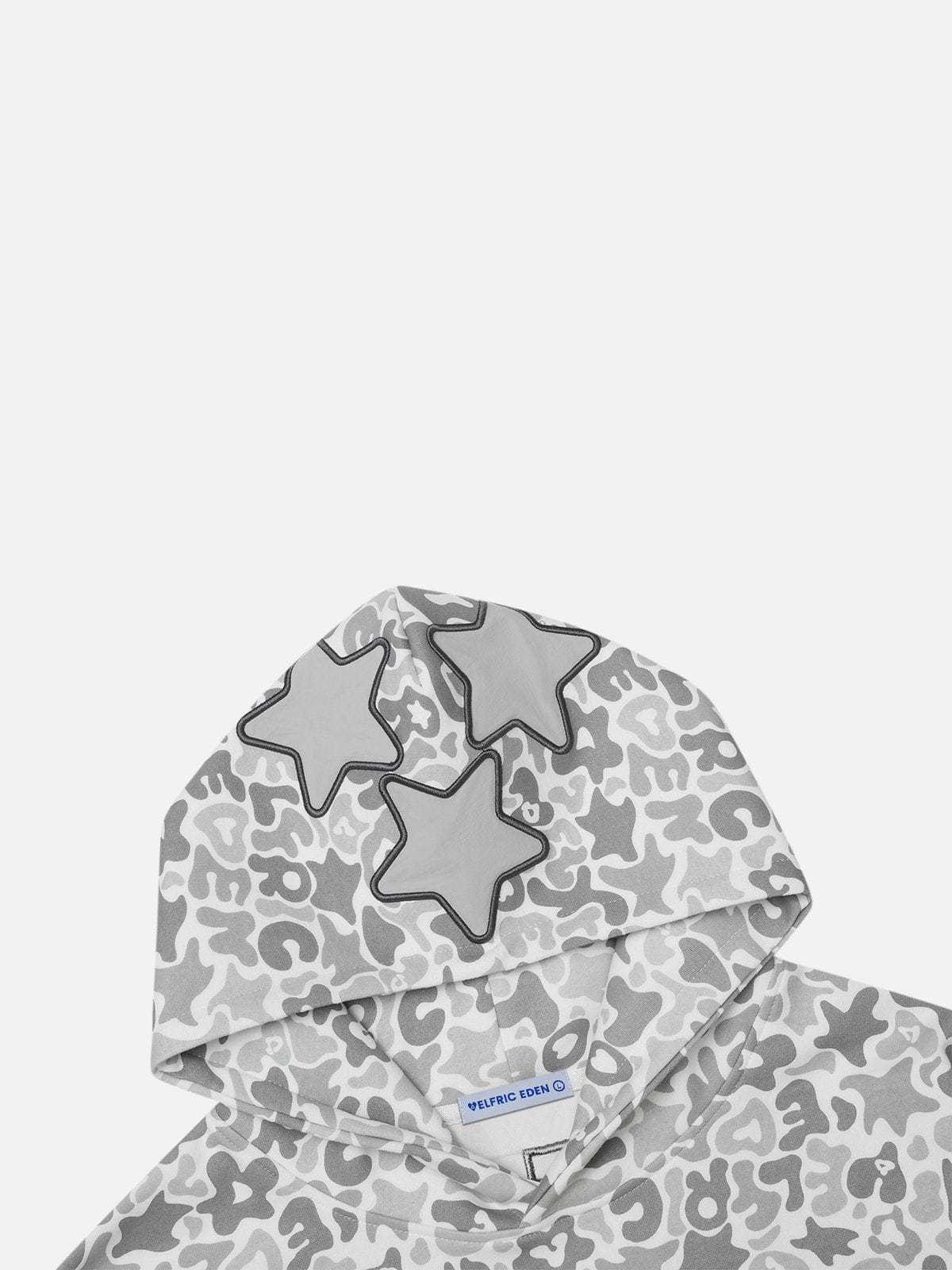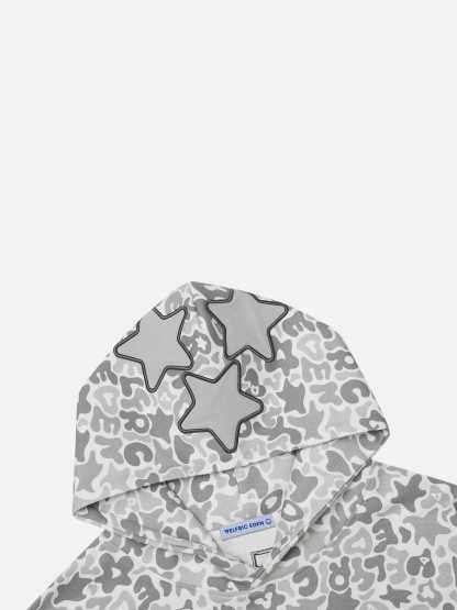 The embroidery star camouflage hoodie blends street style with bold design. Featuring intricate star embroidery over a camo pattern, this hoodie offers a unique, edgy look. Made with soft, durable fabric, it ensures fashion and warmth.