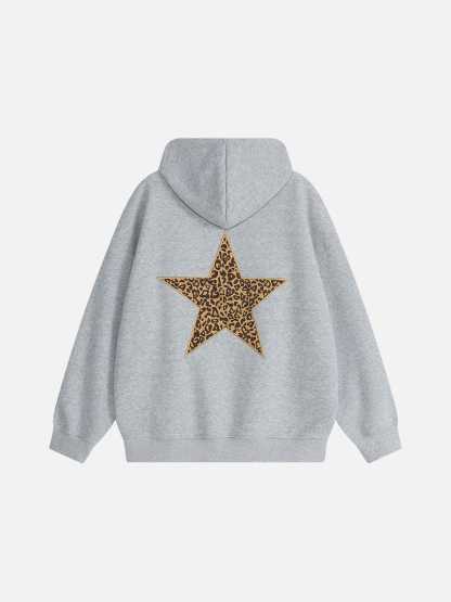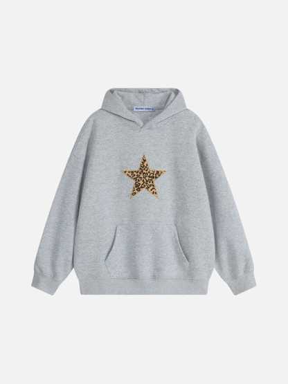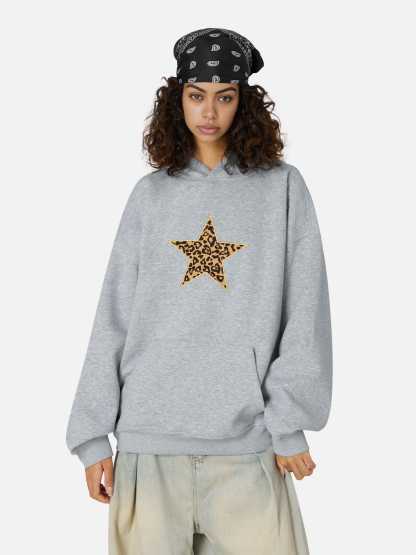 A statement hoodie featuring a bold leopard star graphic on the back, combining classic and edgy styles. Crafted from soft cotton for a cozy feel, it offers a relaxed fit and functional hood. Perfect for adding personality to everyday outfits while staying comfortable.