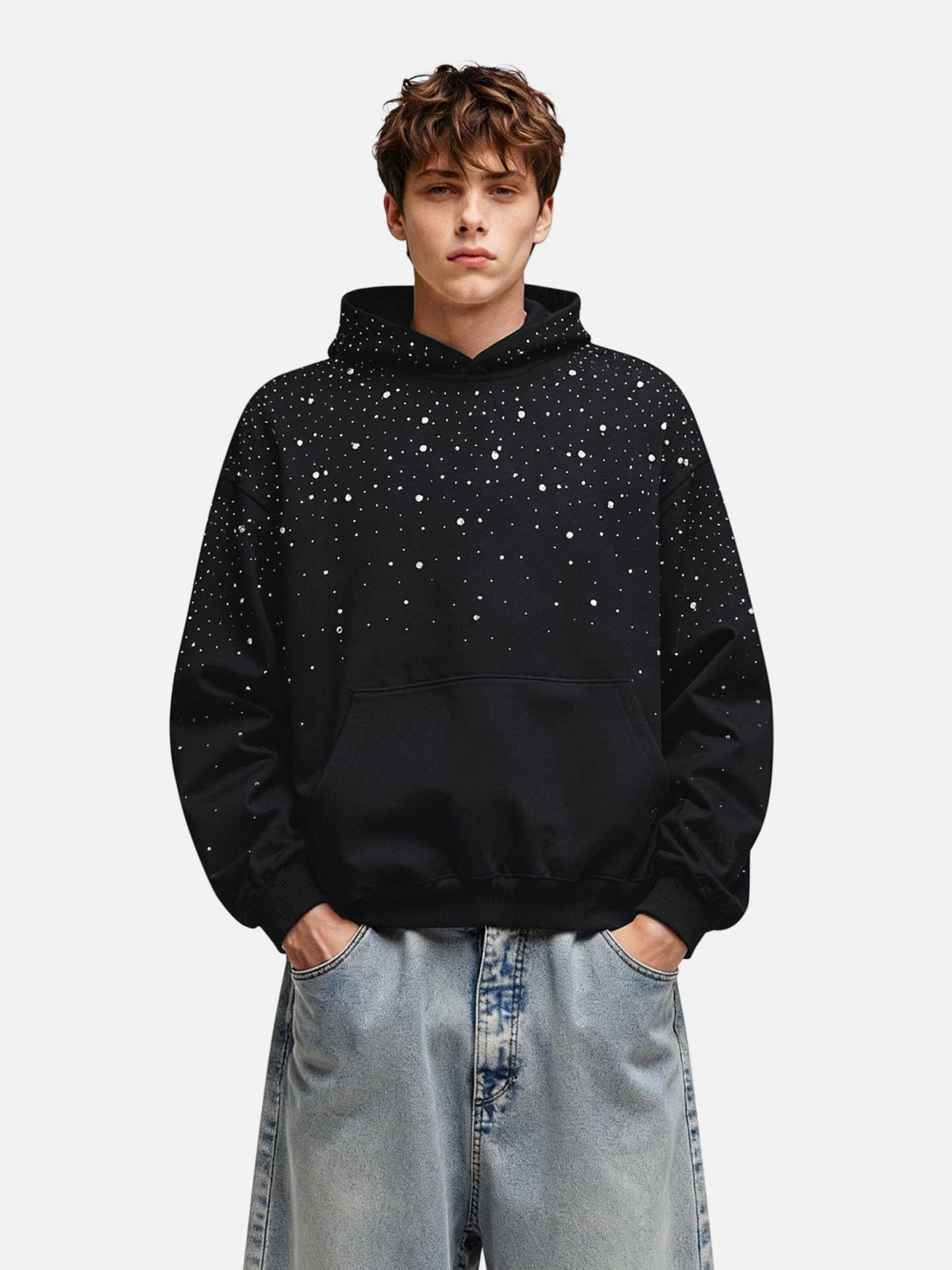 The Aelfric Eden Rhinestone Pullover Hoodie features sparkling rhinestone embellishments that add a touch of glamour to its comfortable design. Perfect for elevating your casual style, this hoodie combines cozy wearability with eye-catching shine.