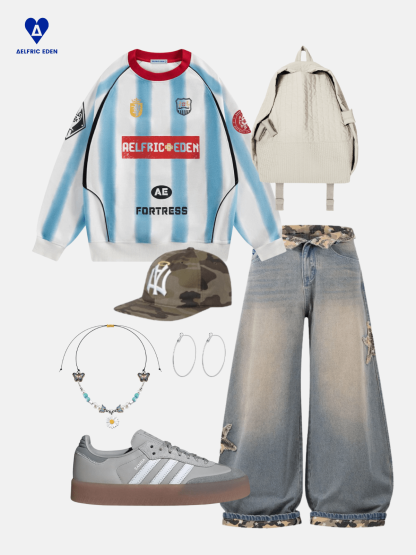 Make a bold statement with the Aelfric Eden Stripe Patchwork Print Sweatshirt, featuring a distinctive "77" print that adds a sporty and trendy edge. Combined with dynamic stripe and patchwork designs, this sweatshirt offers a unique, eye-catching look. Perfect for those who want to stand out while enjoying comfort and style in one versatile piece.