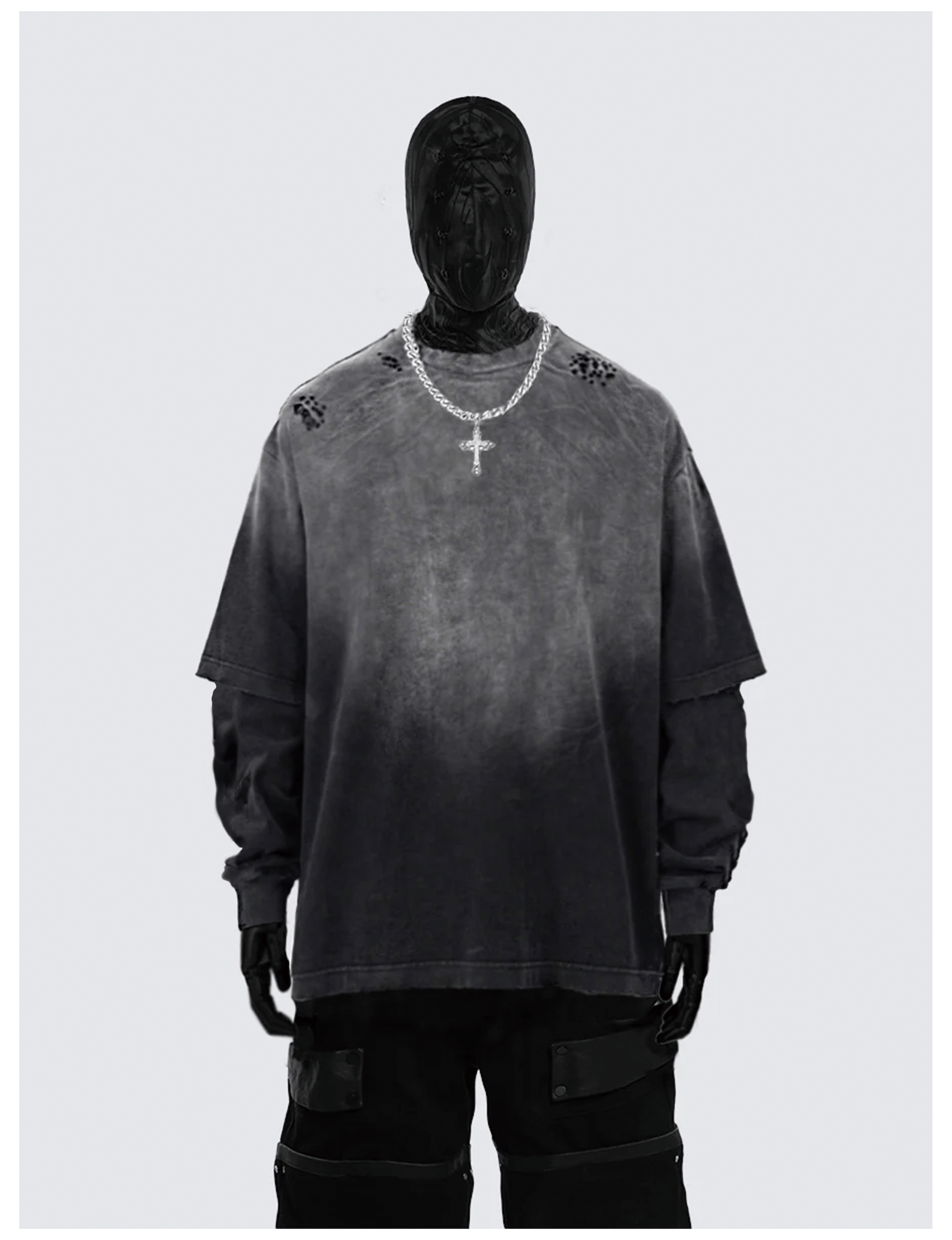 Vintage washed effect with flame embroidery on the sleeves and cut-out details on the shoulders
