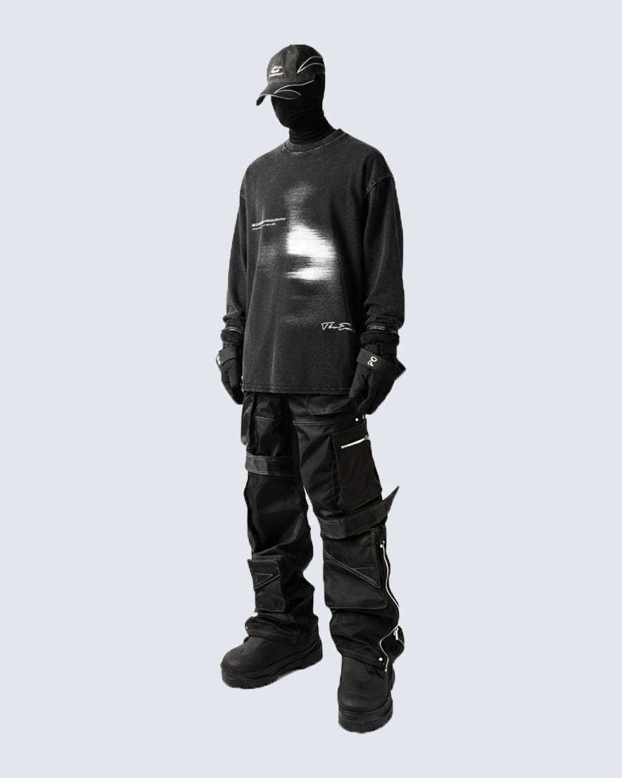 Blurred Figure Print Long Sleeve T-shirt