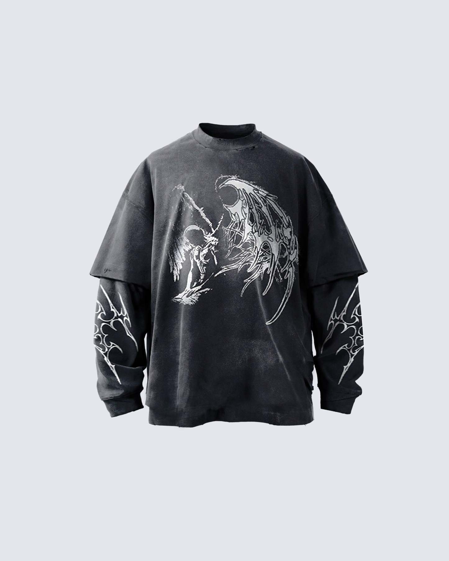 Dark Wings Unleashed · Layered Long-Sleeve Tee