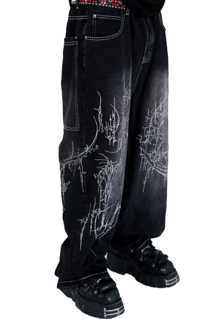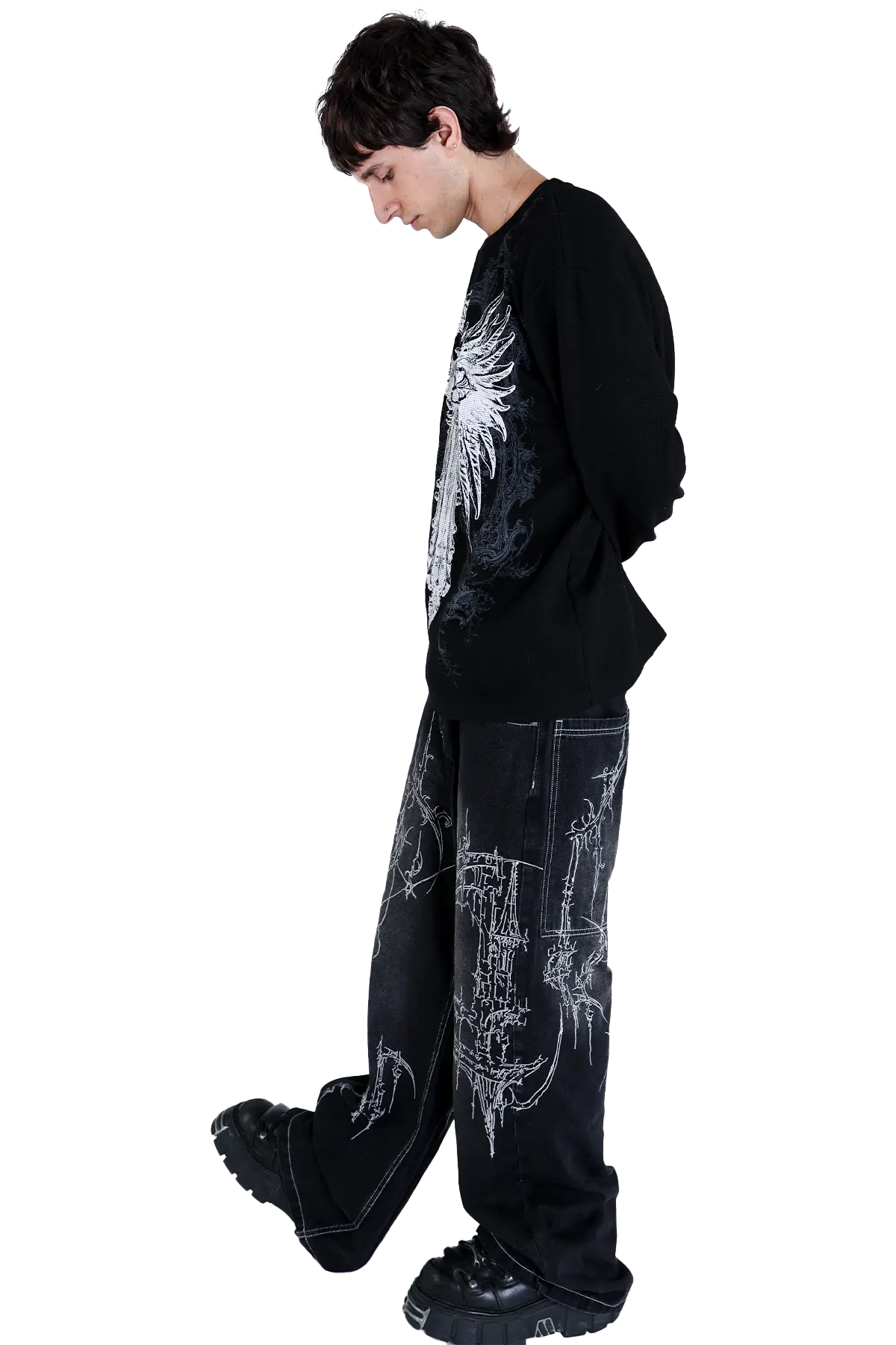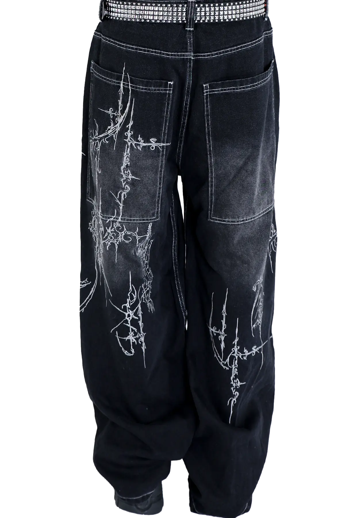 These mid-weight denim jeans are crafted for durability and everyday comfort, with premium cotton that feels great and lasts. Designed with a relaxed, baggy fit & a wide leg opening, they’re made to move with you. Finished with detailed screenprint that'll last life's roughest moments.