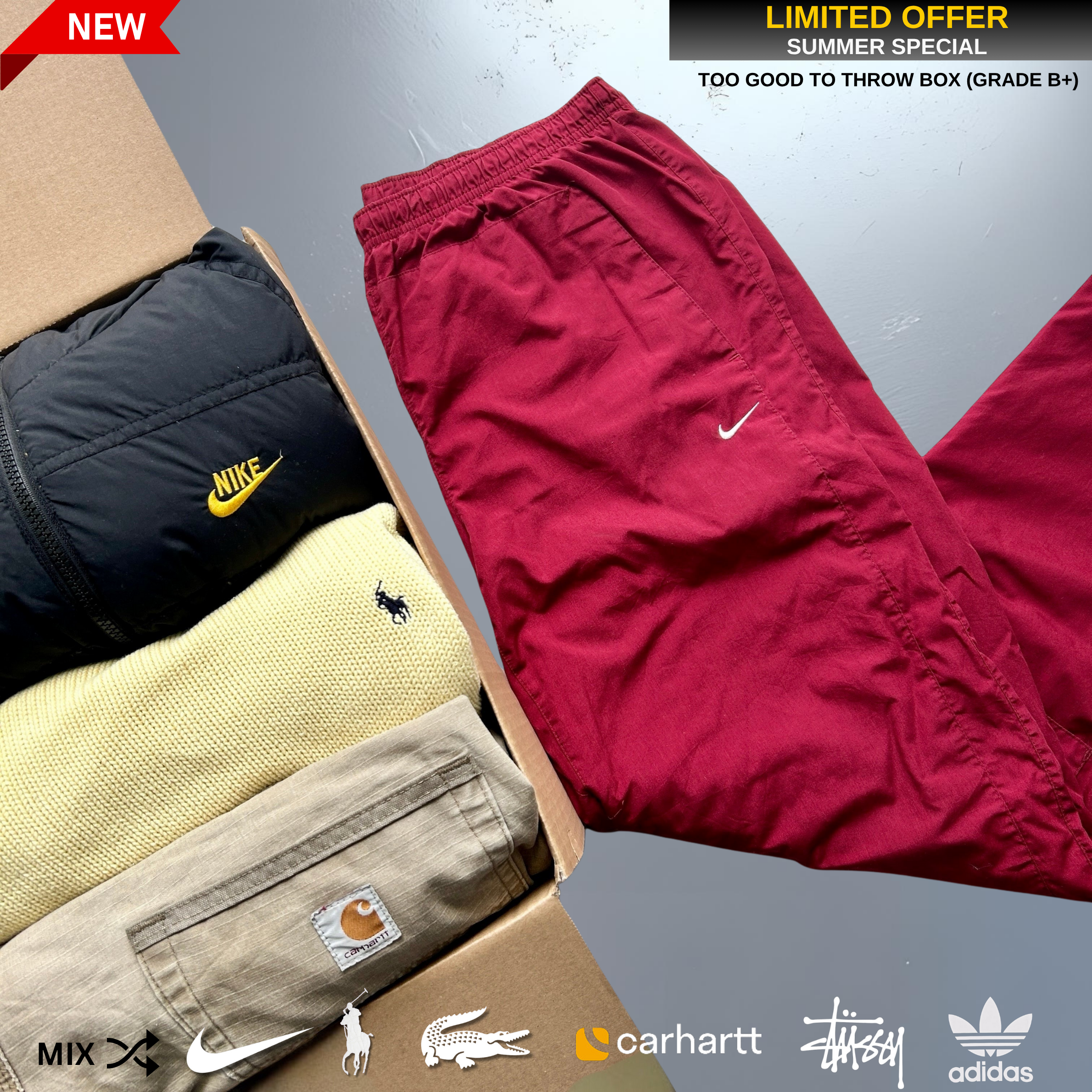 Diese Marken können in der Box enthalten sein: Nike, Adidas, Lacoste, Polo Ralph Lauren, Stüssy, Carhartt.