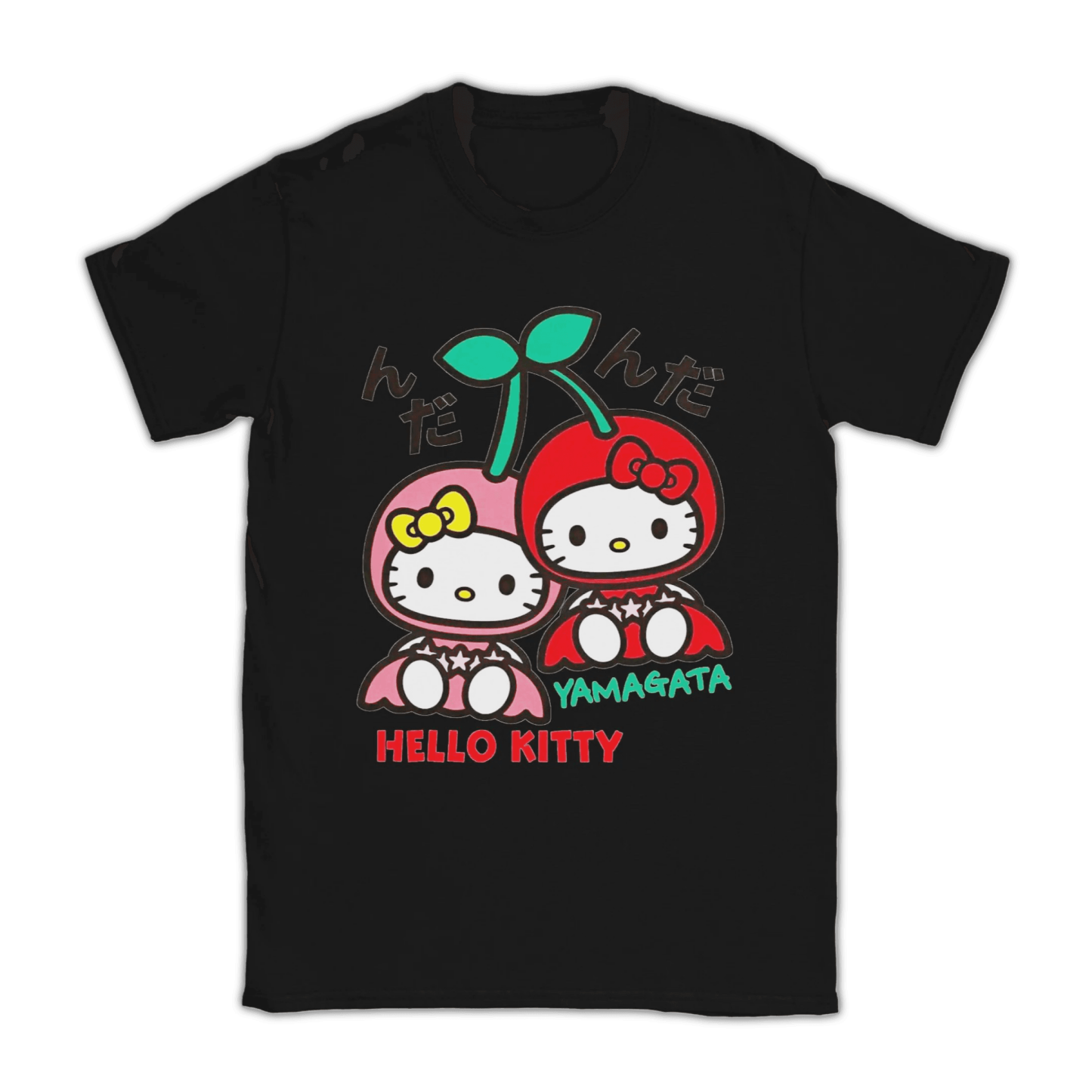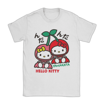 Featuring Hello Kitty with adorable cherries, this tee bursts with fruity charm and playful Sanrio style — a must-have for kawaii lovers and fans of cute character fashion.