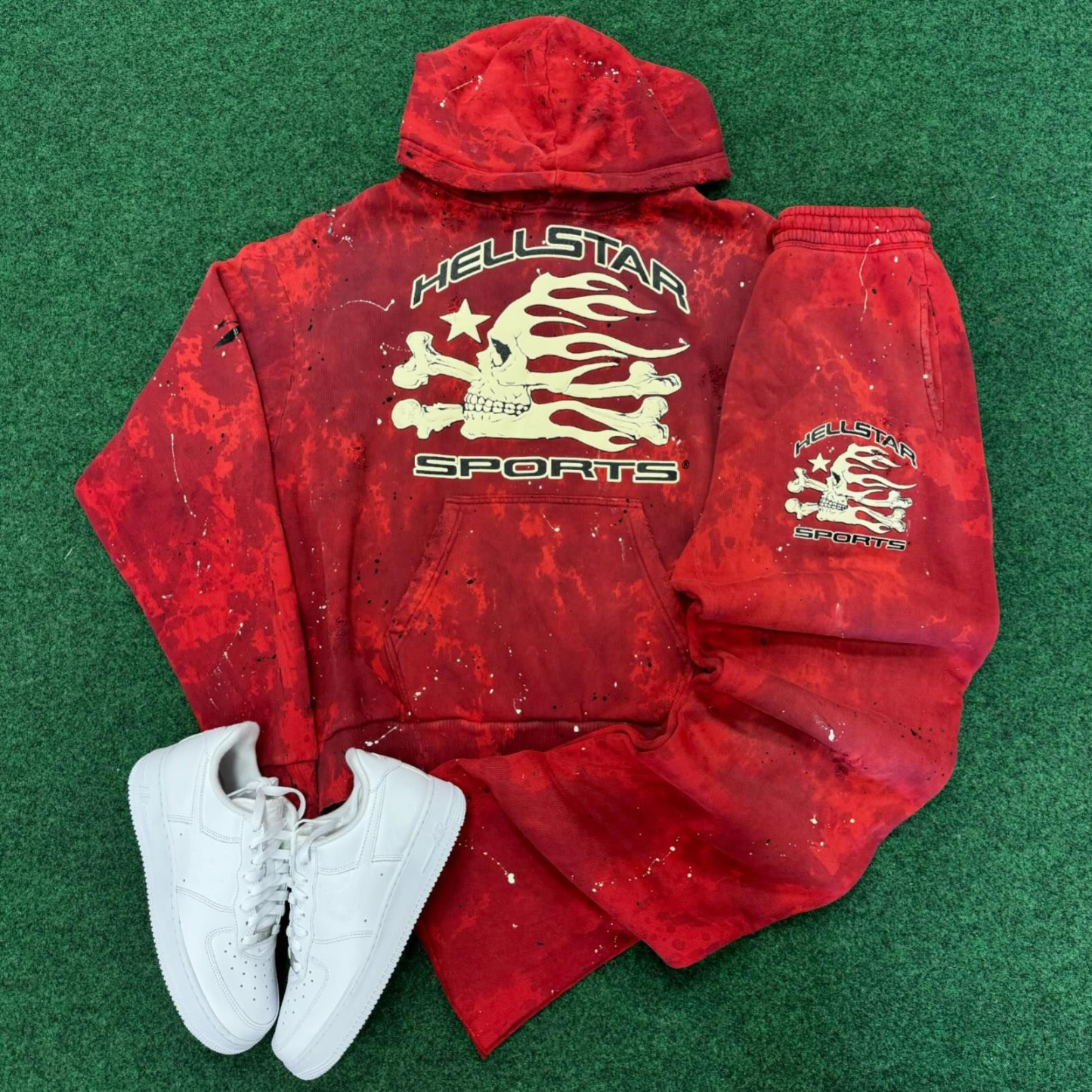 Letters Skull Print Two Piece Hoodie Set