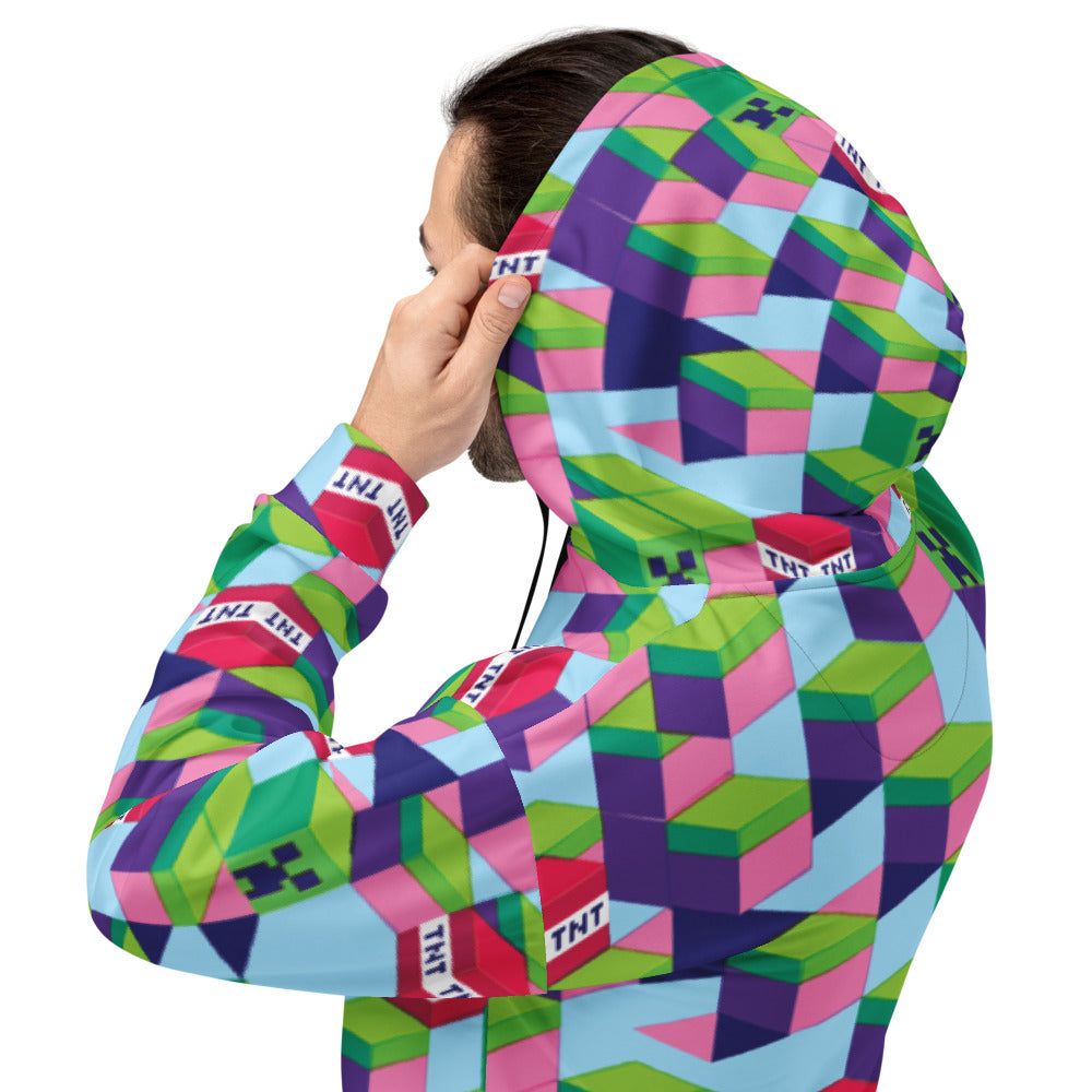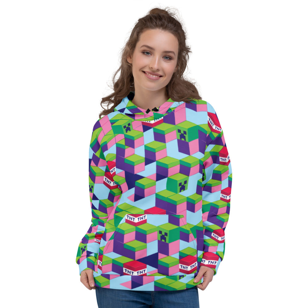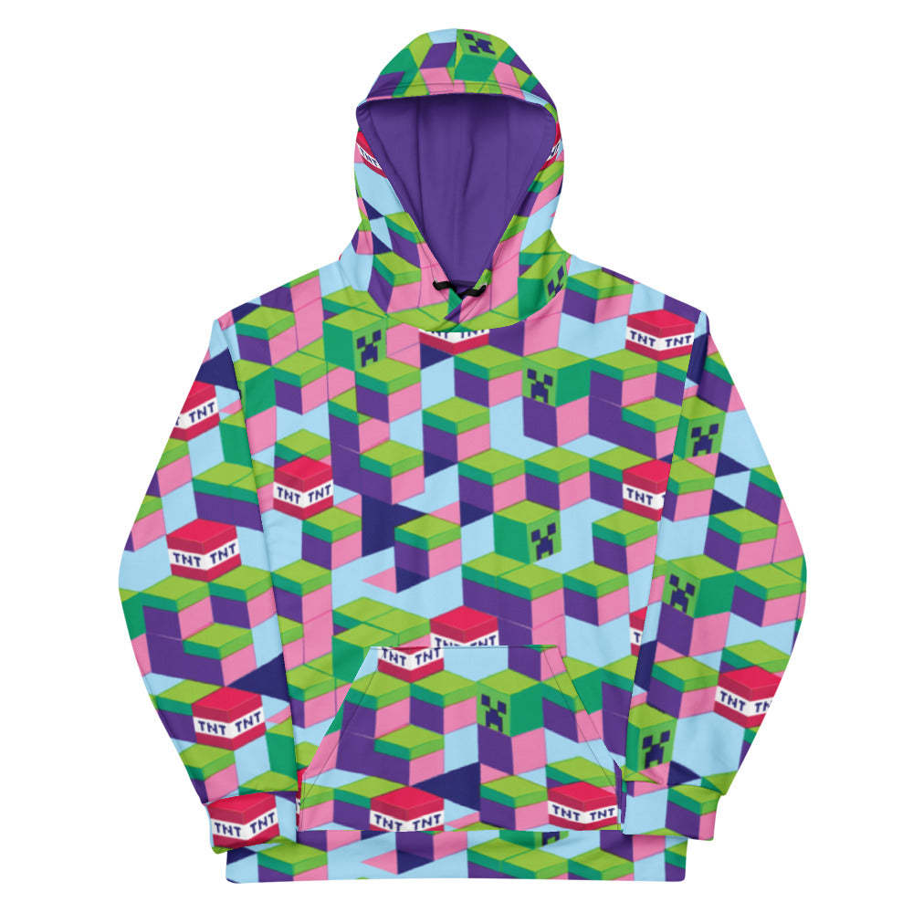 Blend comfort, style, and a pixelated world with the Minecraft Pattern Adult Hoodie. This cozy hoodie showcases an all-over pattern of the game's iconic Creeper, making it the perfect pick for Minecraft fans who want to stay warm while repping their favorite mob. Whether you're building your next masterpiece or just chilling IRL, this hoodie brings game-day energy to everyday wear.