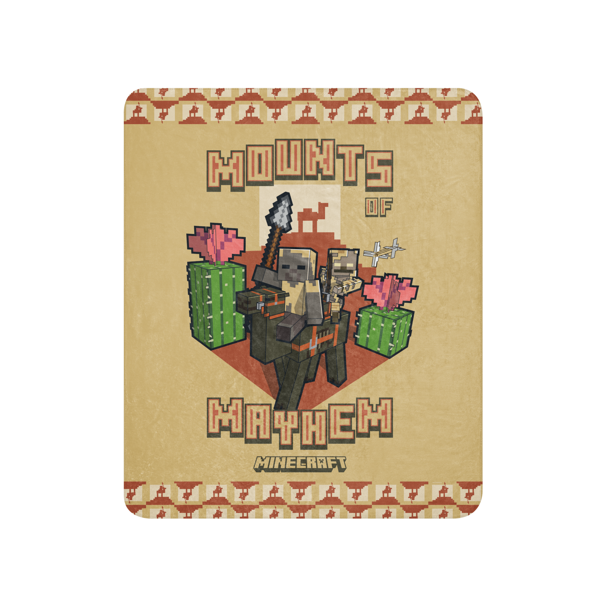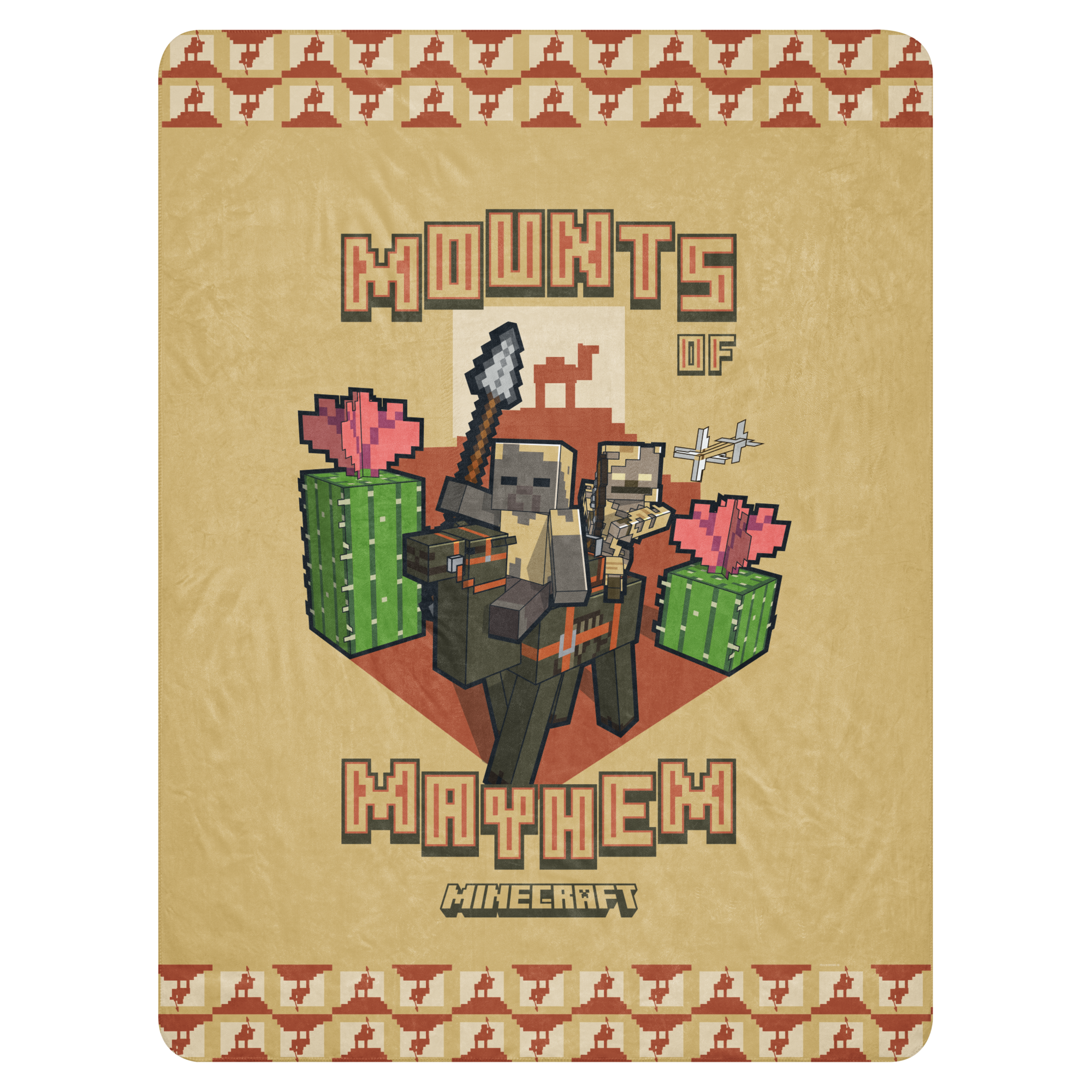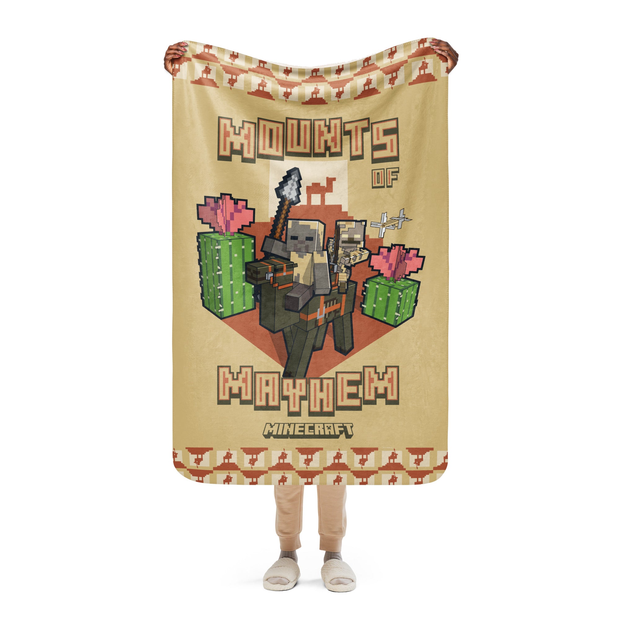 Wrap yourself in warmth and Minecraft excitement with our Minecraft ��Mounts of Mayhem�� Sherpa Blanket. Featuring action-packed artwork of chaotic mob-riding fun, this ultra-plush blanket brings comfort, color, and creativity to every gaming setup, bedroom, or living room.