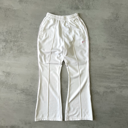 I pantaloni Nike degli anni 2000 rappresentano un'icona di stile sportivo e funzionalità, perfettamente in linea con l'estetica di quel decennio. Realizzati prevalentemente in tessuti tecnici come il nylon o il poliestere, si distinguono per il loro taglio ampio e rilassato, con elastici in vita e alle caviglie che ne accentuano la praticità. Spesso arricchiti da tasche laterali con zip e dettagli riflettenti, questi pantaloni incarnano lo spirito dello streetwear e dell'athleisure di quegli anni. I colori spaziano dal classico nero a tonalità più vivaci, con il logo Nike, ricamato o stampato sulla gamba, che aggiunge un tocco distintivo e riconoscibile.
