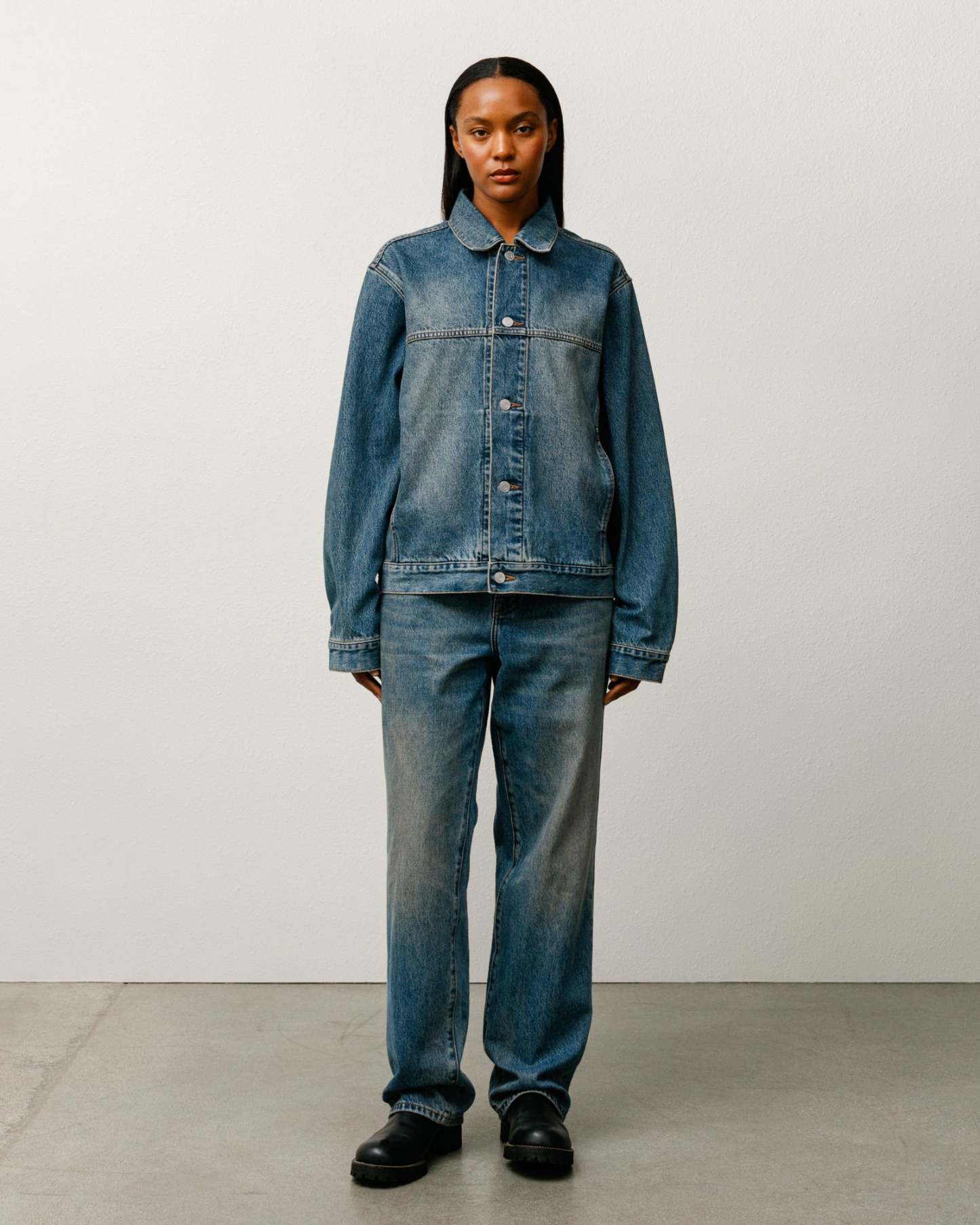 Relaxed fit, boxy cut trucker jacket