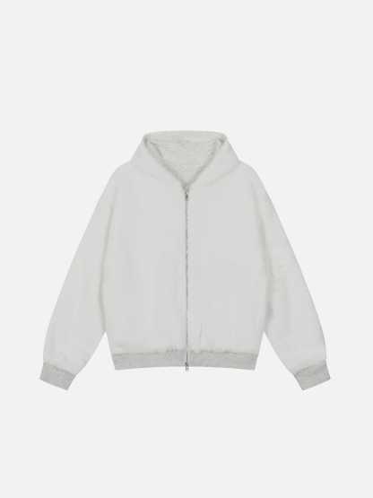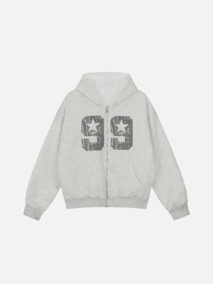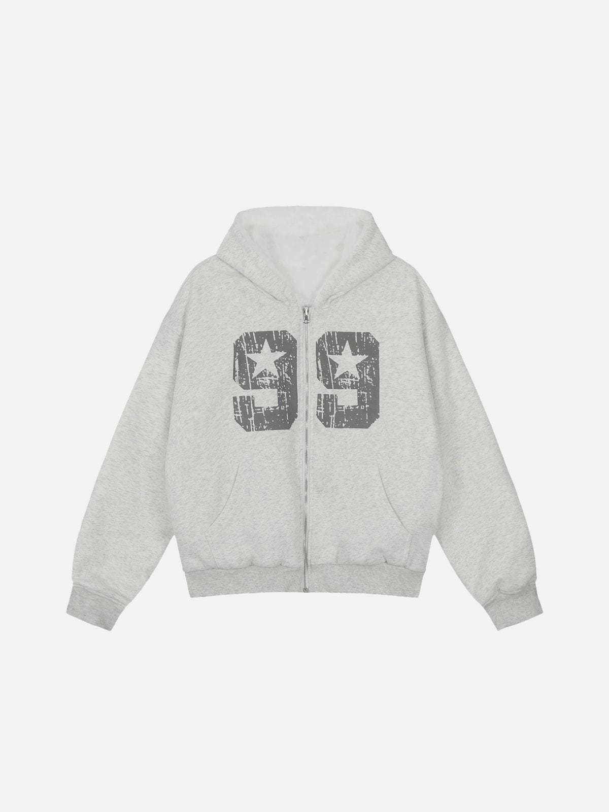 Stay comfortable and versatile with the Aelfric Eden 99 Graphic Zip Up Hoodie. One side features a regular fabric while the other is a thicker, fluffier material, providing warmth and coziness. Experience the convenience of two styles in one with this unique hoodie.