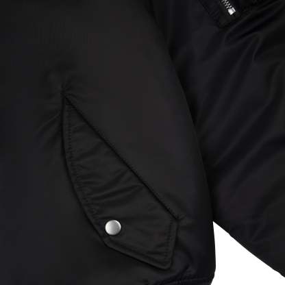 160gsm parachute fabric / 100% nylon / wind- and waterproof / polyester lining / fiber filling / ribbed collar, hem and cuffs / embroidery on back and sleeve / with JKJ zipper and fireman claps / fits true to size
