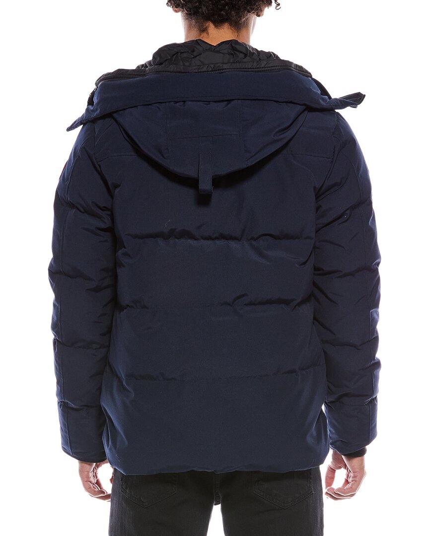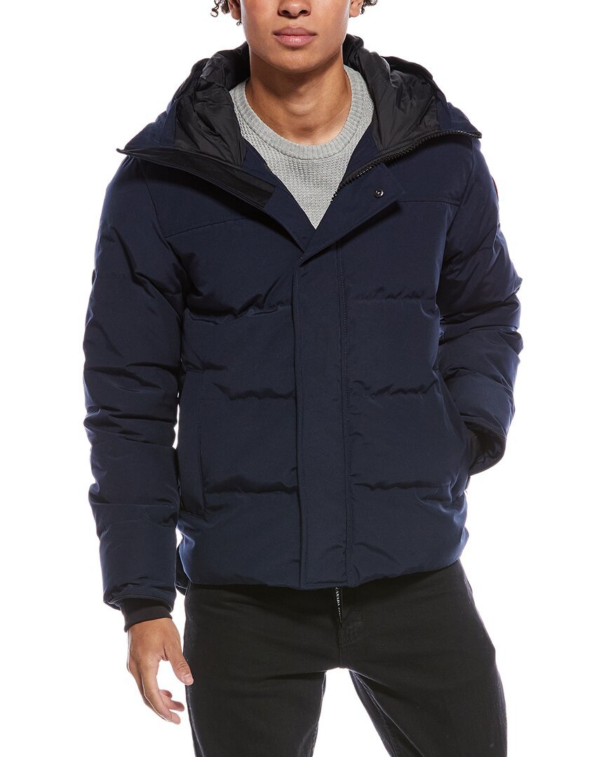 Introducing the Canada Goose Macmillan Down Parka, a stylish and functional addition to your outerwear collection. This blue puffed parka features a drawstring hood, stand-up collar, dual front zippered pockets, ribbed inner cuffs, step hem, and a zippered inner left pocket for added convenience. Crafted from a durable blend of polyester and cotton, with a 100% nylon lining, this medium weight parka provides warmth and protection from the elements. Filled with 80% down and 20% feather, and padded with 100% polyester, this parka is designed to keep you comfortable in cold weather. Measuring approximately 29 inches from shoulder to hem, this parka is available in various sizes to suit your preference. Designed and made in Canada, this parka embodies Canada Goose's commitment to quality craftsmanship and functional design. Whether you're trekking through the wilderness or navigating city streets, the Canada Goose Macmillan Down Parka is sure to keep you warm and stylish. Shop with confidence knowing that all our products are 100% genuine and sourced from trusted suppliers.