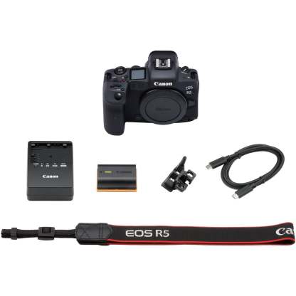 Canons all-new 45 Megapixel full-frame sensor is at the heart of the EOS R5s superb image quality, which also leads the way for impressiveCanons all-new 45 Megapixel full-frame sensor is at the heart of the EOS R5s superb image quality, which also leads the way for impressive 8K DCI cinematic movie capture with the ability to extract 35.4 Megapixel still images. Focus and speed are paramount in the EOS R5, provid-ing impressive continuous capture at speeds of up to 20 frames-per-second and with Dual Pixel CMOS AF II capability, to track split second movements of even the most elusive of subjects. With 1,053 Automatic AF zones, it is easier than ever to photograph people with the use ofEye, Face and Head Detection AF, or intuitively track the whole body, face or eye of cats, dogs, or birds with Animal Detection AF. The 5-axis in-body image stabilization can effectively compensate for camera shake with approximately 8 stops of stabilization with use of both non-stabi-lized, and optically image stabilized lenses. Connectivity like 5GHz and 2.4GHz Wi-Fi and Bluetooth, is also included.