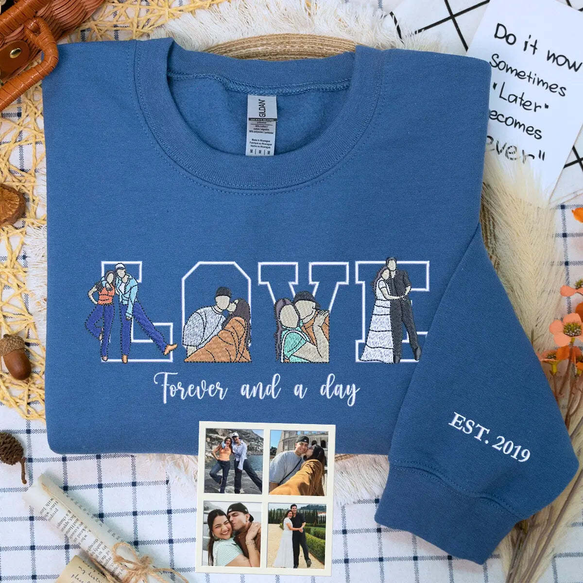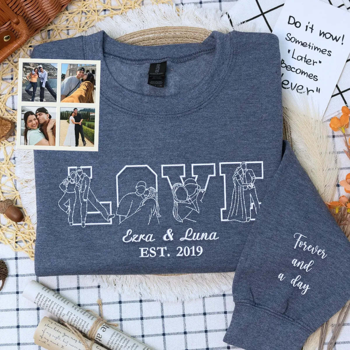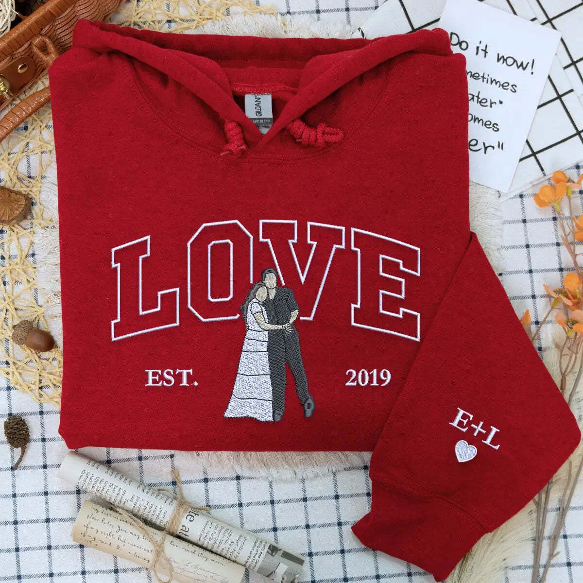 Custom Couple Love Life Photo Portrait Shirt, Sweatshirt or Hoodie, Personalized Embroidered Gift for Him Her