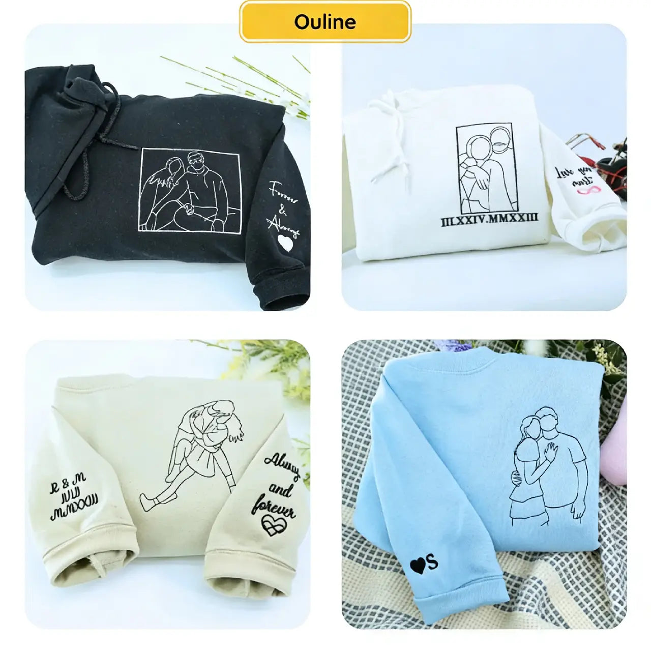Transform your most treasured memory into a wearable work of art. Our Custom Couple Photo Portrait Shirt, Sweatshirt, or Hoodie is not just apparel—it's an exquisitely embroidered heirloom, immortalizing your love story in delicate, textured thread. Using your favorite photo, we create a stunning, tonal portrait of you and your loved one, making for a profoundly personal and romantic gift for him or her that is crafted to last a lifetime.