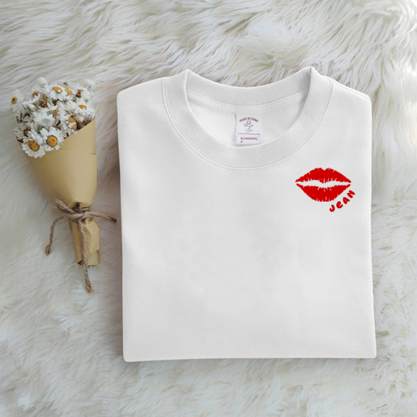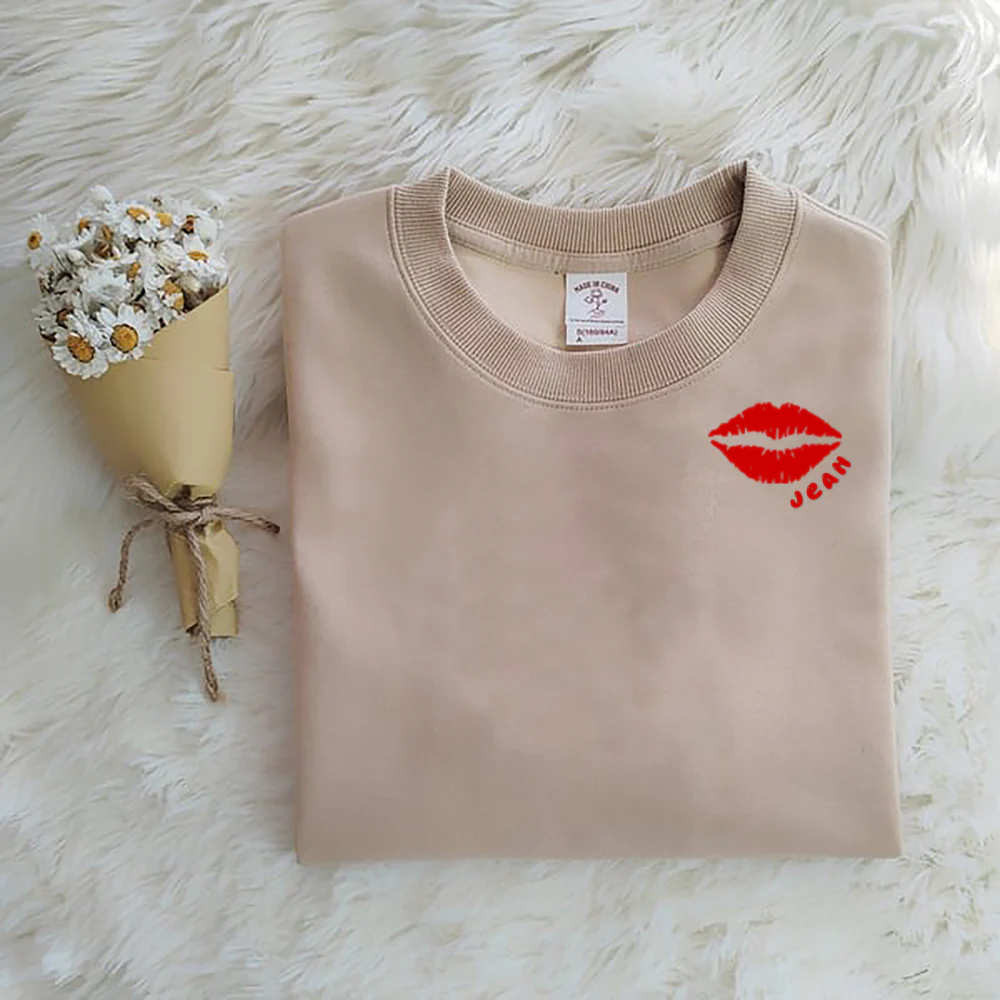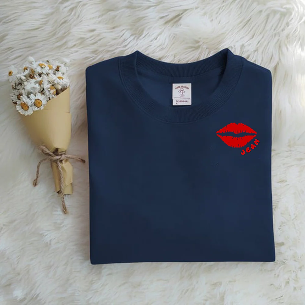 Custom Text Lip Print Embroidered T-shirt,Sweatshirt,Hoodie Valentine's Day Gifts