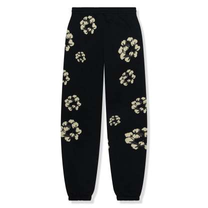 The Denim Tears x CPFM Cactus Tears Wreath Black Sweatpants feature a loose fit, a striking Cactus Tears Wreath embroidery, and are made of soft, premium cotton. These sweatpants fit snug and comfortably thanks to their ribbed cuffs and adjustable drawstring waist, making them ideal for streetwear aficionados and casual wearers.