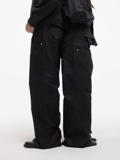EMBROIDERED DETAIL WIDE-LEG PANTS