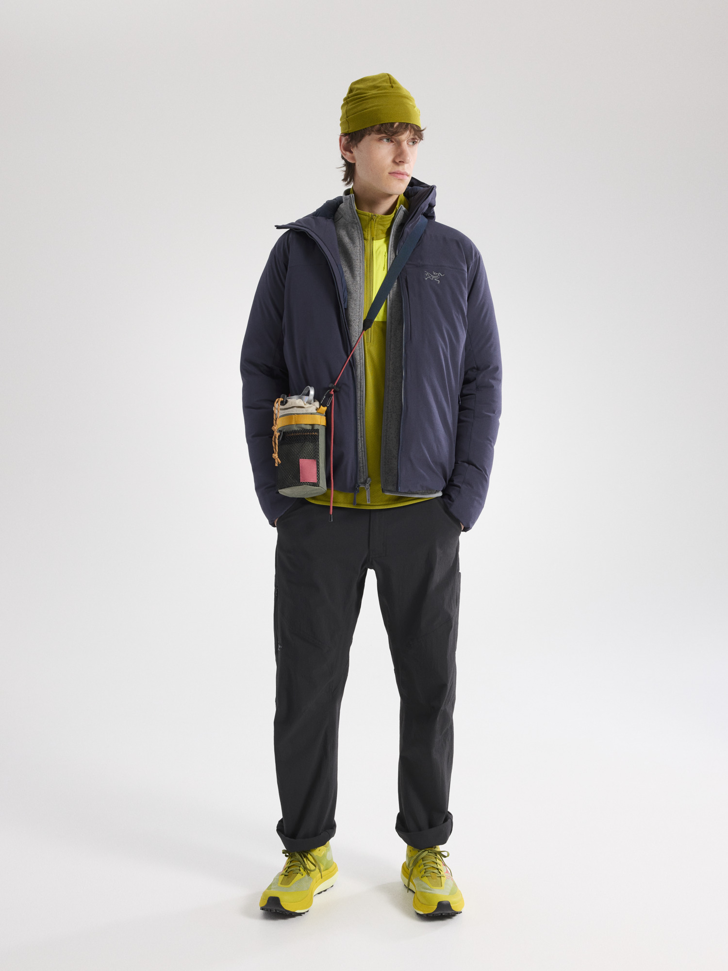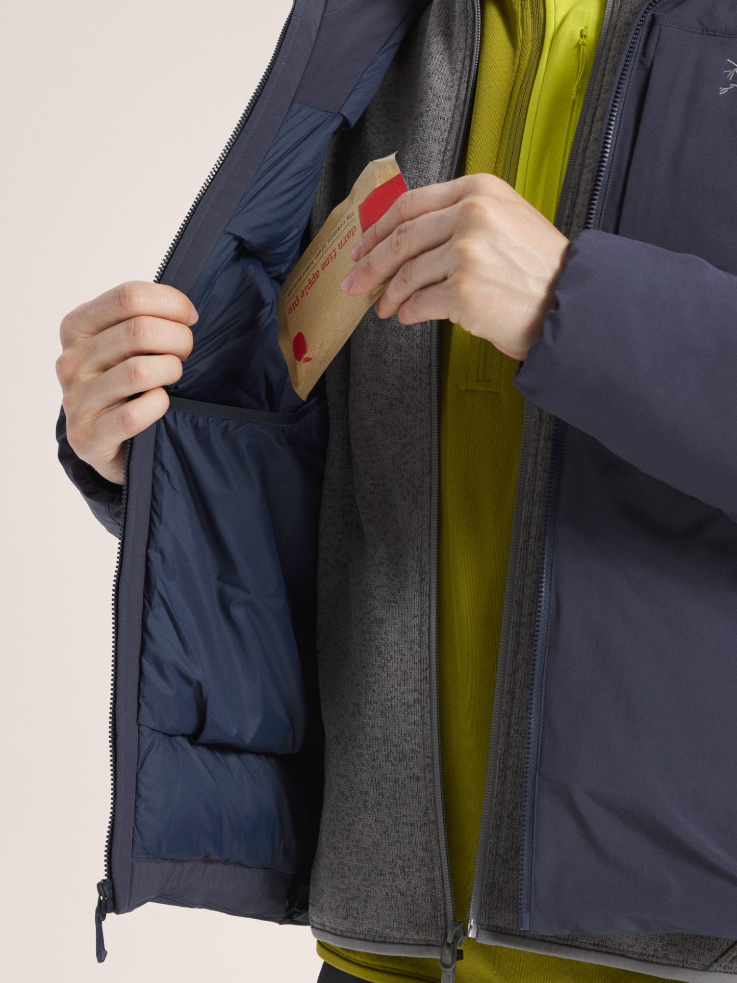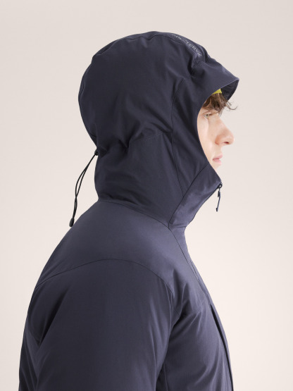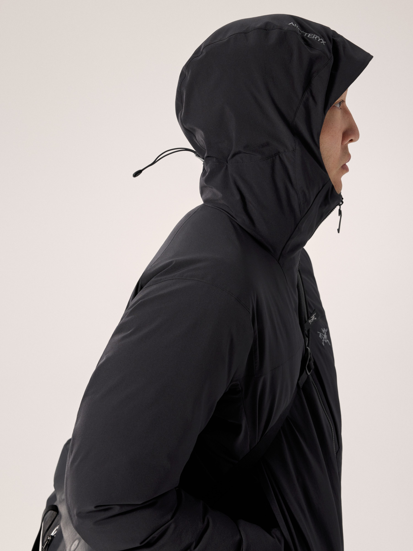 Warm and durable with a clean design – this jacket is for life in the mountains. Its durable Wee Burly Weave softshell fabric repels water, resists wind, breathes, and stretches to remove restriction. Responsibly sourced 750-fill goose down provides warmth, and 100% recycled Coreloft™ insulates areas prone to moisture. The hood adds coverage and quickly adjusts with a single pull, and the ergonomic design includes articulated patterning for freedom of movement.