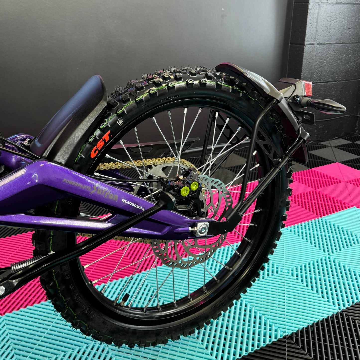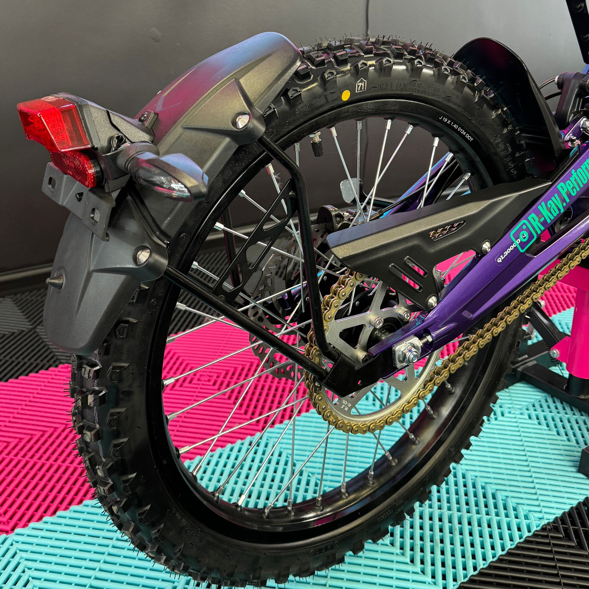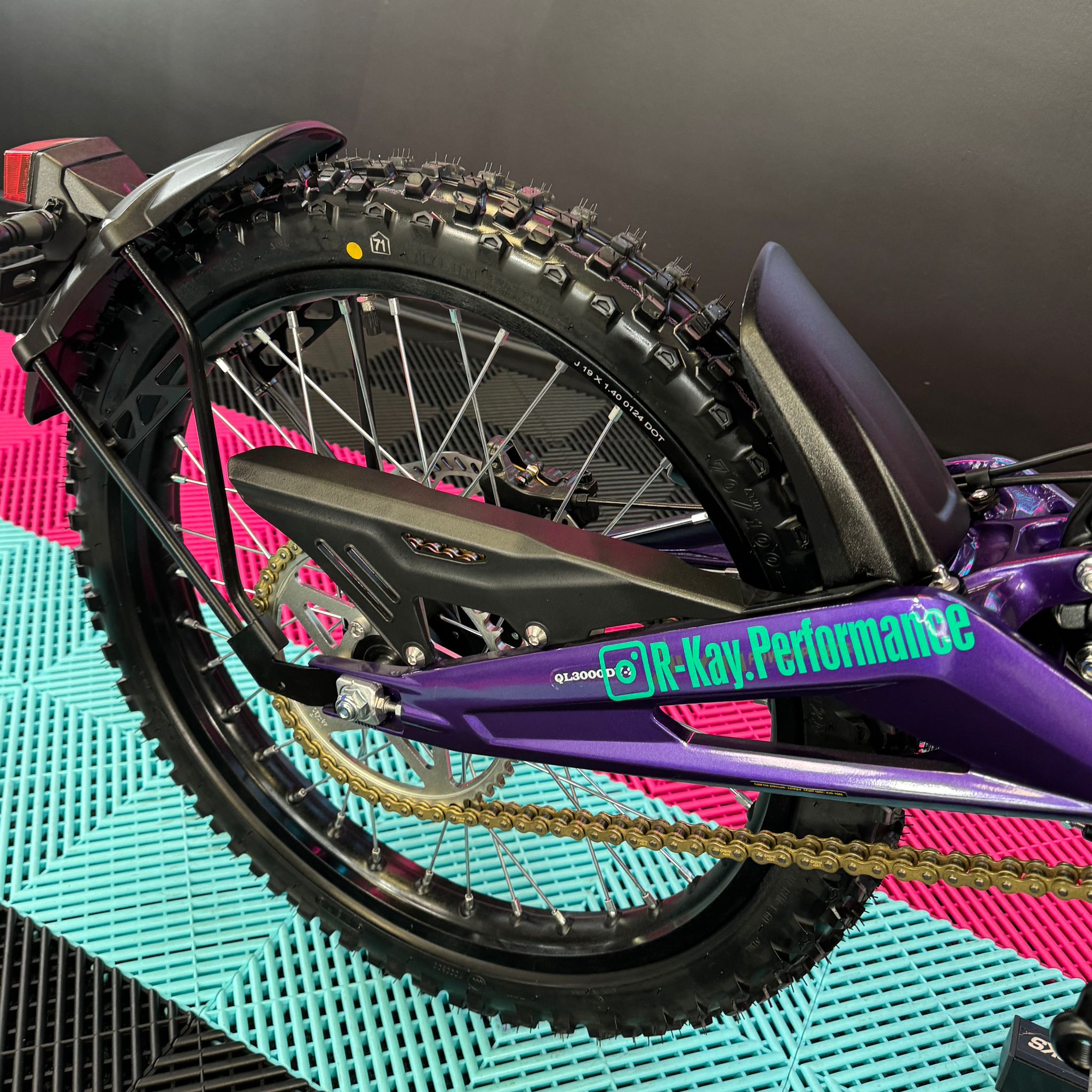 At R-Kay Performance, we're thrilled to offer the brand new Surron Light Bee X, a CE-approved UK-spec model. It's finished in Phantom Purple with eye-catching Green OEM stickers. With the latest 60v 40Ah Samsung Cell Battery, it delivers improved power and range, reaching speeds of up to 50mph. Plus, it comes with full 18 months warranty! It's an incredible package! 🎯