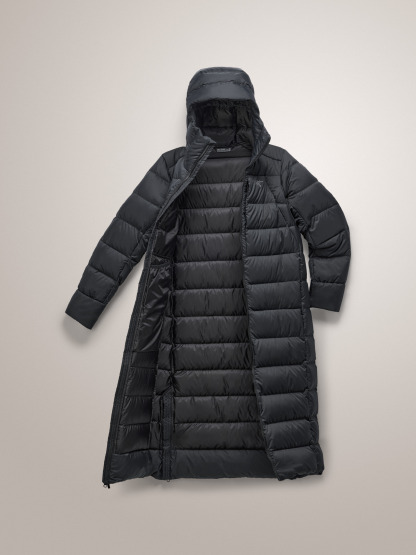From the hood to the top of your boots – this is full-coverage warmth for winter's coldest days. The 750 fill-power goose down insulation is light, efficient, and responsibly sourced. Down Composite Mapping places Coreloft synthetic insulation in areas prone to moisture, including the hood, zipper guard, and under the arms, and the light, durable Arato 30 nylon shell has a PFAS-free treatment to repel water. Multiple pockets – inside and out – provide storage, and the two-way front zip and side-seam zippers at the hem free your stride.